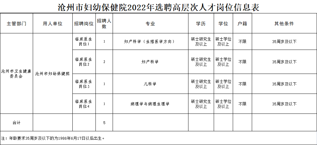 沧州市妇幼保健院一、选聘人数及岗位