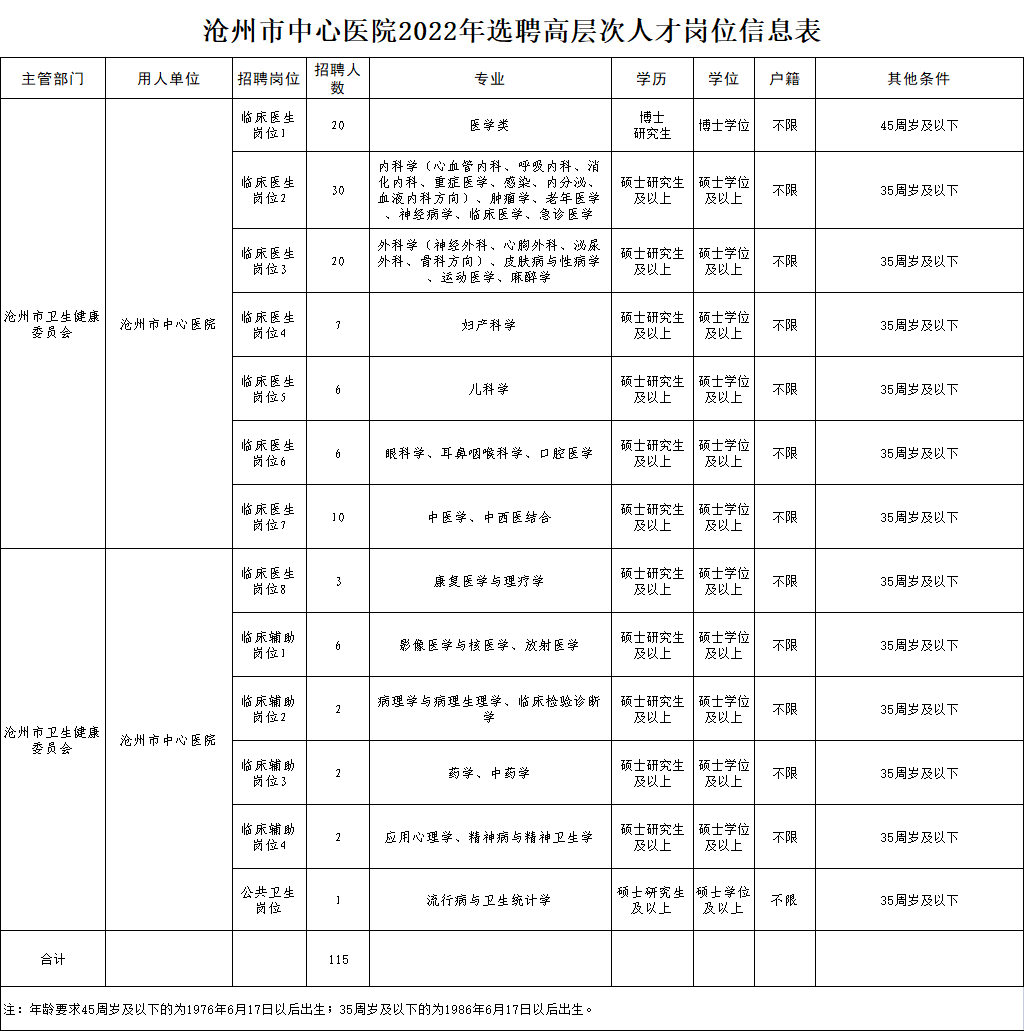 为深入实施“人才强市”战略,进一步加大高层次人才引进力度,根据《事业单位人事管理条例》《河北省事业单位公开招聘工作人员暂行办法》《沧州市事业单位公开招聘工作人员实施办法(试行)》及沧州市人才强市具体工作要求,结合公司工作需要,经研究决定,拟采取选聘方式引进高层次人才115名。