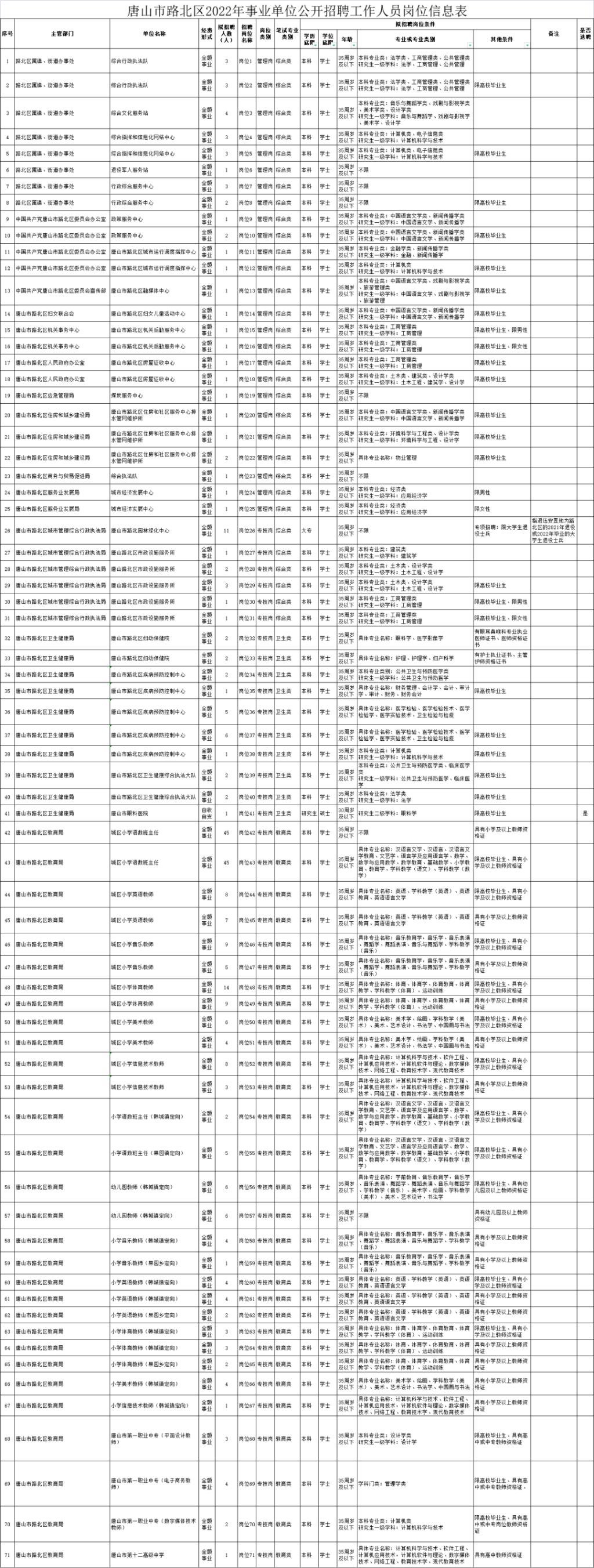 为满足唐山市路北区事业单位工作需要,根据《事业单位人事管理条例》《河北省事业单位公开招聘工作人员暂行办法》,经路北区委、区政府研究决定,面向社会公开招聘事业编制工作人员。