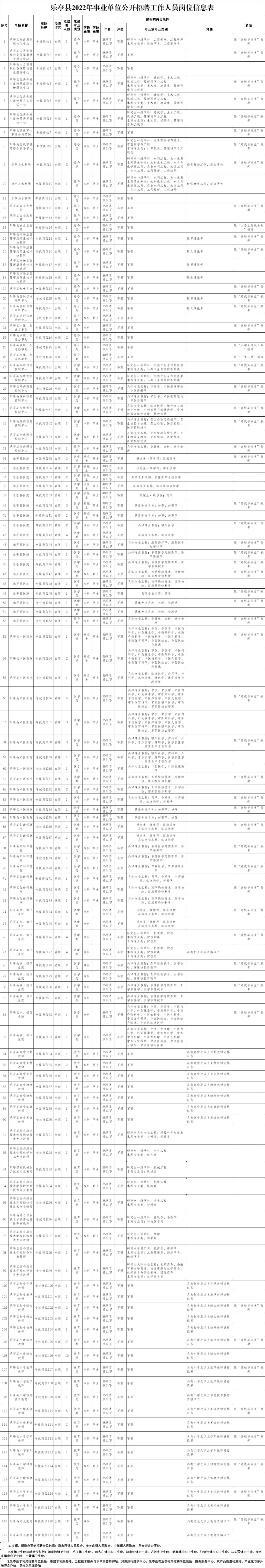为满足乐亭县事业单位工作需要,根据《事业单位人事管理条例》及《河北省事业单位公开招聘工作人员暂行办法》,经研究决定,面向社会公开招聘事业编制工作人员。参加本次公开招聘的事业单位共招聘工作人员242名。各招聘单位的拟招聘人数、岗位条件等详见《乐亭县2022年事业单位公开招聘工作人员岗位信息表》。