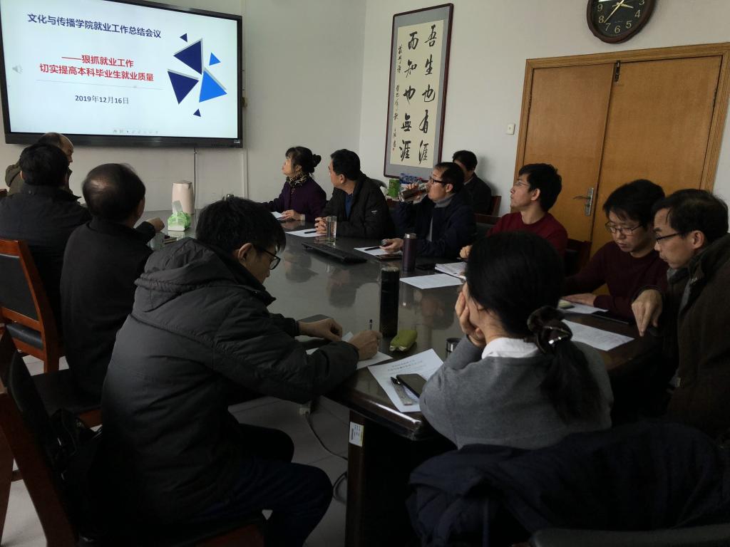 新闻中心讯(记者 李蕊娜 陶甜)12月16日下午,文化与传播学院在学院会议室召开了“狠抓就业工作切实提高本科毕业生就业质量”的就业工作总结部署会议,公司党委书记翟建北主持,经理张金桐,党委副书记仇静莉,副经理马瑞、景义新出席,各教研室正、副主任,员工办公室主任,教务办公室主任,党务公室主任,全体班主任、辅导员参加。