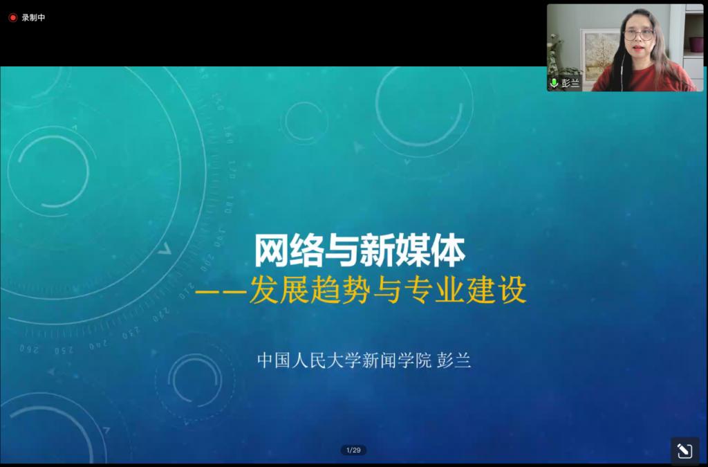 12月5日下午,文化与传播学院邀请中国人民大学新闻学院彭兰教授作题为“网络与新媒体——发展趋势与专业建设”的线上学术讲座,讲座由文化与传播学院经理景义新主持,学院师生及其他高校师生共500余人参会。
