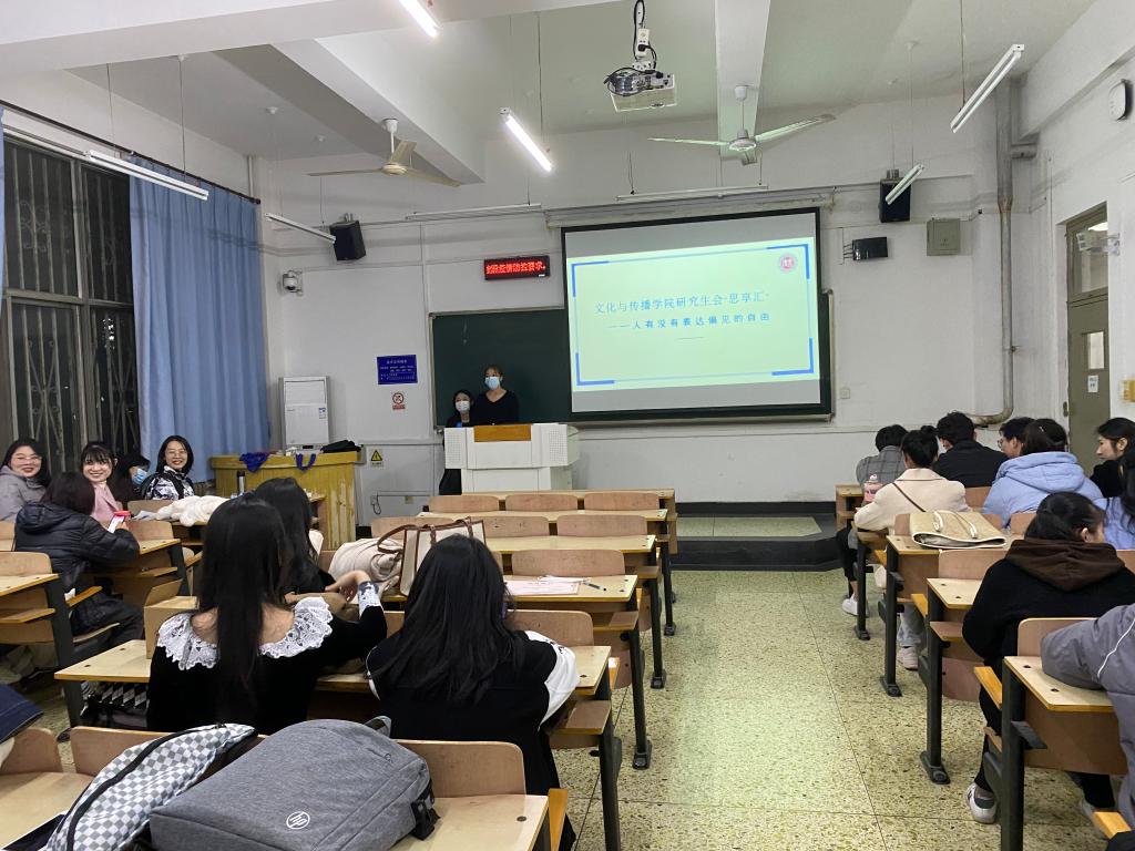 suncitygroup太阳新城文化与传播学院研究生会于11月5日晚七点在三办B105教室举办主题为“人有没有表达偏见的自由”的思享汇。同学们踊跃发言,积极表达自己的想法。