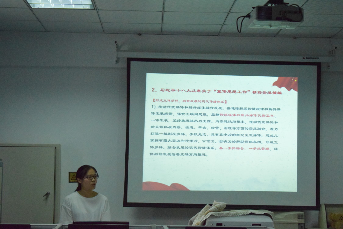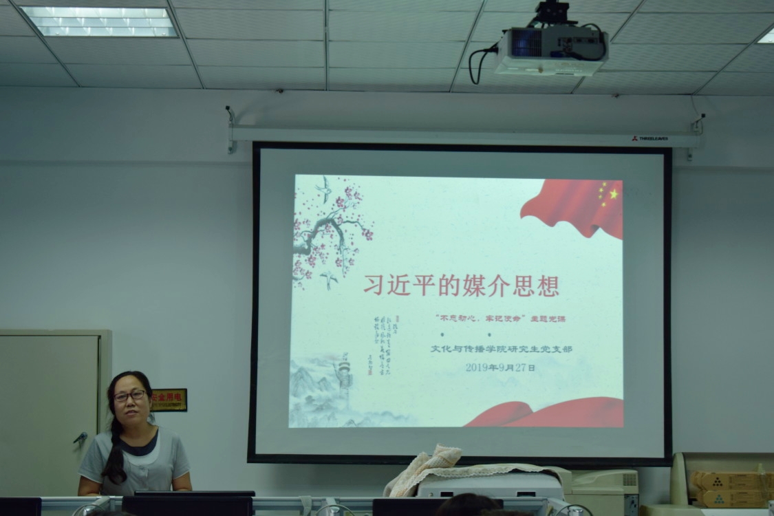 9月27日下午,文化与传播学院研究生党支部在学院编辑排版机房开展了“不忘初心,牢记使命”主题党日——党课进课堂学习教育活动。活动由文化与传播学院研究生生支部书记李剑欣主讲,文化与传播学院研究生支部全体党员、入党积极分子参加。