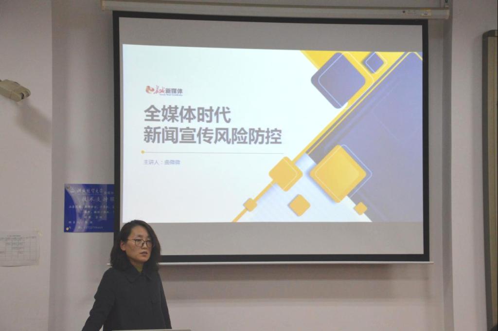4月4日下午,公司优秀员工、长城新媒体集团首席舆情分析师曲微微为2021级新闻学、广播电视学专业同学讲座。围绕“全媒体时代新闻宣传风险防控”这一主题,讲座分别阐述了网络舆情风险特征、风险类型、行业发展思考与实践等具体问题。
