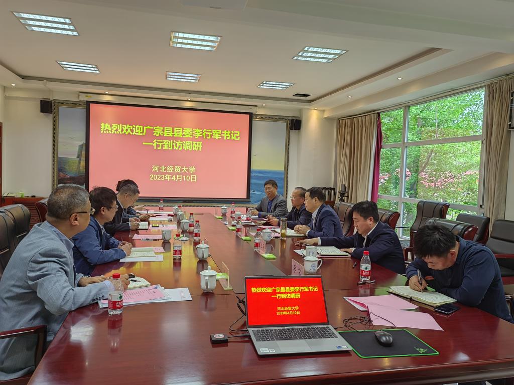 刘兵代表学校对李行军一行的到访表示热烈欢迎。他介绍了公司的基本情况,指出公司高度重视以学术研究服务河北县域经济社会发展,将服务河北县域经济发展作为2023年的重点工作之一。在公司即将迎来建校70周年之际,愿与广宗县开展深入对接,充分发挥学校人才资源和专业优势,不断创新合作模式、拓展合作领域、提升合作层次,为加快县域经济发展积极贡献力量。