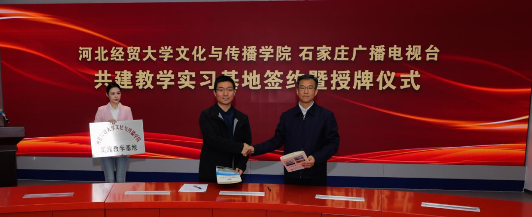 双方在授牌仪式上签署了合作协议,并合影留念。之后双方在座谈环节就如何开展全方位、深层次合作进行了深入交流,为今后的合作发展提供了思路和方向。此次活动奠定了文化与传播学院和石家庄广播电视台的合作关系,开辟了校地互通赋能的新路径,拓展了员工实习就业的新平台。