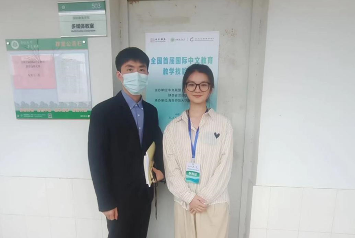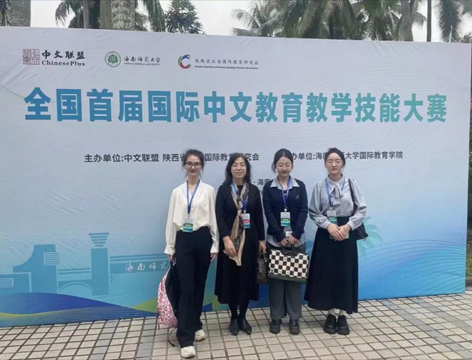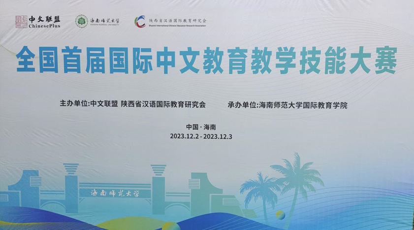2023年12月1日至4日,汉语国际教育系刘昕远老师带领公司21级汉语国际教育专业刘佳华、赵悦尧,22级汉语言文学专业王夺一参加全国首届国际中文公司产品技能大赛。本次大赛由中文联盟与陕西省汉语国际教育研究会共同主办,海南师范大学国际教育学院承办。