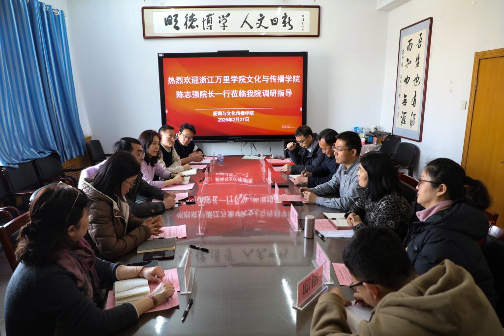 陈志强经理对公司热情接待表示感谢,并对公司新闻与传播专业硕士培养体系、部校共建新闻学院协同育人模式、本科一流专业建设成效及新闻传播学实验教学中心的创新实践给予高度评价。随后,他分享了浙江万里学院文化与传播学院的发展历程和办学经验。座谈尤其就新闻与传播专业硕士的招生、培养、实践、就业,硕士点建设等话题进行了深入交流,并达成长期合作交流意向。