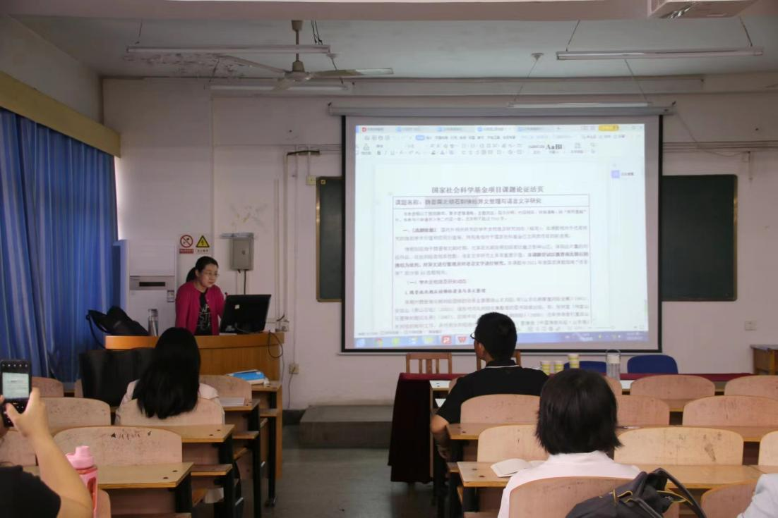 刘征围绕自己申报获批的2023年国家社科基金青年项目《北朝石刻佛经文字整理与研究》进行经验分享。她从研究方向确定、题目打磨、成果积累、内容撰写等方面进行细致讲解,并强调一定要重视前期成果的积累及研究的连续性。针对申报选题问题,刘征指出要重点对已立项课题的题目进行梳理分析,寻找本人研究选题的独特性与可实施性。针对项目申报书的撰写技巧,她提出可借鉴自然科学研究常用的流程图、结构图来提高研究思路表述的直观性、逻辑性与简洁性。刘征还结合近期论文撰写与修改过程中遇到的问题和参会教师展开交流,指出文章撰写一定要勤动笔、多打磨,高度重视审稿专家的宝贵修改意见。