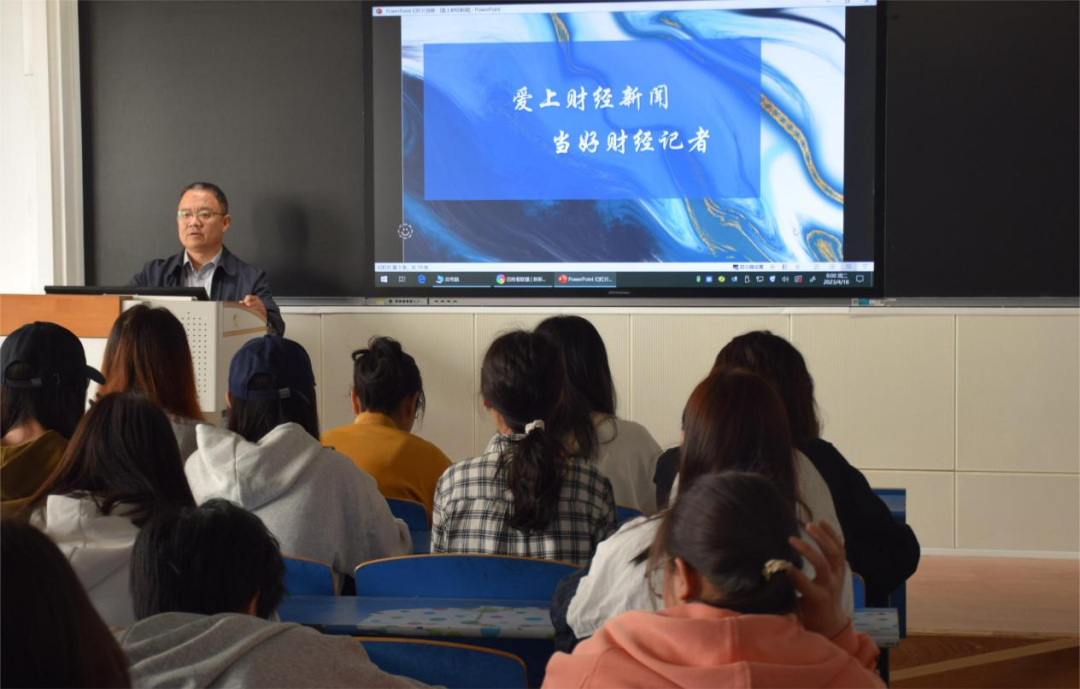 4月18日上午,公司邀请长城新媒体集团财经新闻部主任商棠在第三教学楼A510作“财经记者面对面”第9期讲座,本次讲座主题为“爱上财经新闻,当好财经记者”,讲座由新闻系主任申玉山主持,学院50余名员工参加。