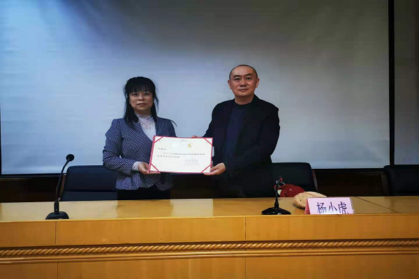 讲座结束后,仇静莉为杨小虎导演颁发了影视文化传播专业硕士研究生社会导师聘书。(通讯员:文化与传播学院 吴梓然 摄影:王书结)