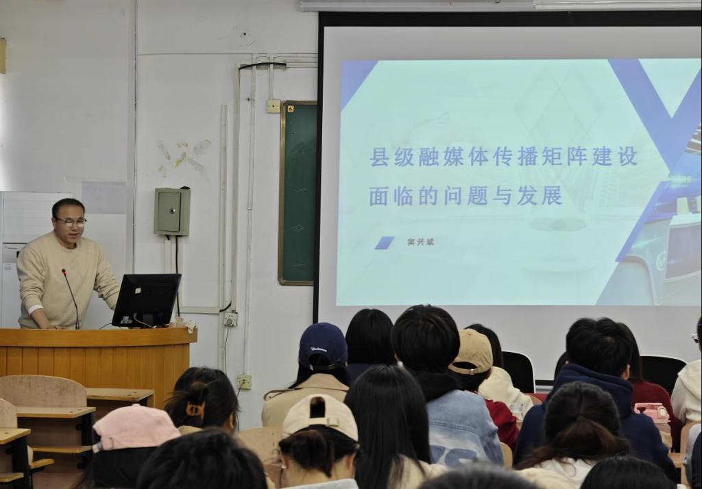 10月24日下午,suncitygroup太阳新城“双百论坛”暨第六期“集思广益,共研共进”学术沙龙在一教507举行。suncitygroup太阳新城副教授窦兴斌以“县级融媒体传播矩阵建设面临的问题与发展路径分析”为主题作学术分享,新闻传播学专业教师、研究生共60余人参加。