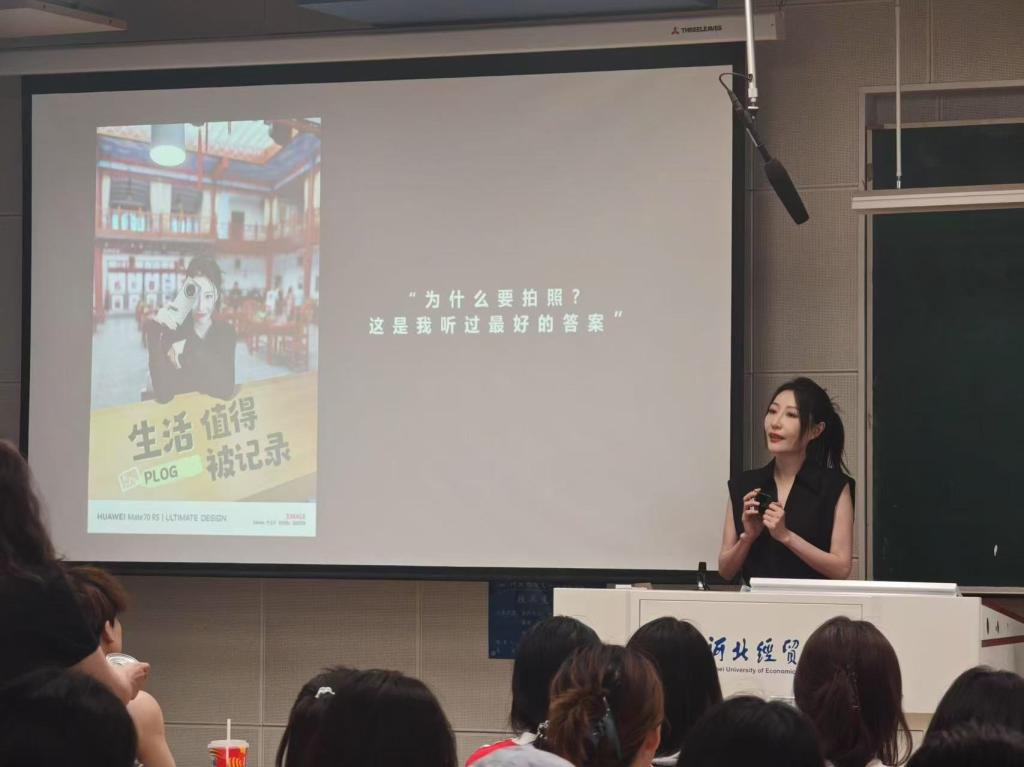 讲座最后,周新蕾向同学们展示优秀作品范例,指出华为手机在摄影技术领域的优势所在,并强调摄影要重视客观技术与主观情感的结合。她认为手机不只是一台通讯设备,而是通向艺术世界的任意门,用颠覆性的创作思维重新定义移动影像——当科技与美学共振,每个人都能成为自己生活的导演,拍出更好的作品,为新闻创作服务。