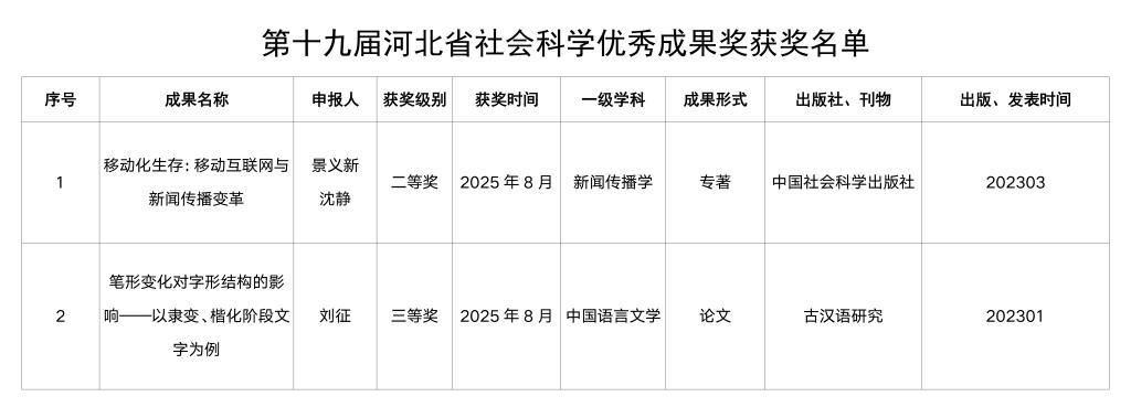 公司获批2项第十九届河北省社会科学优秀成果奖